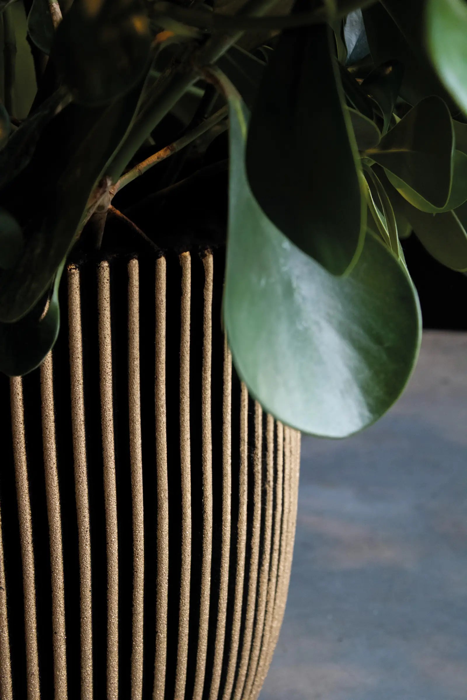 Blumentopf Kugel Groove schwarz gold | 43x41 cm